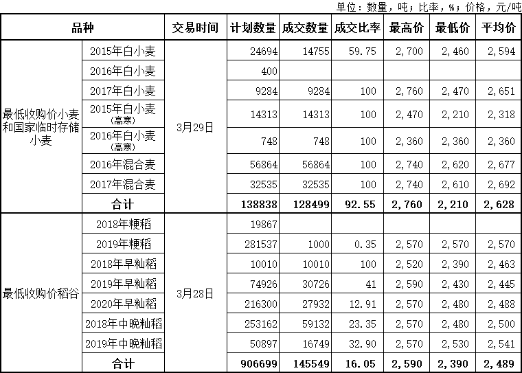 国家政策性粮食交易结果(3月27日-31日)
